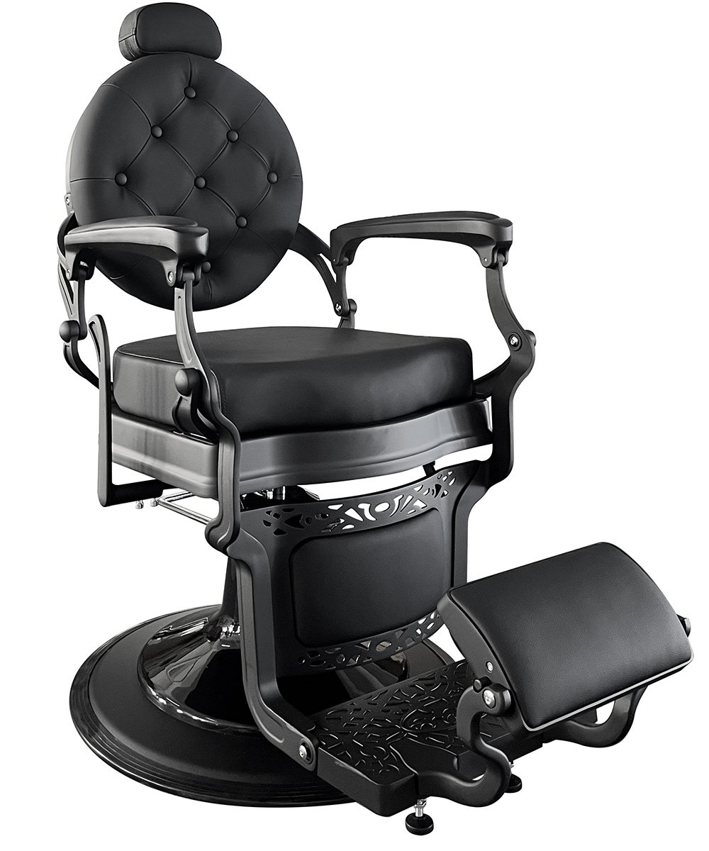 • Reclining Barber Chair with synchronized back and leg lift movement and strong chrome finish metal frame.